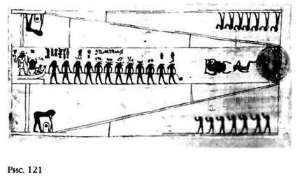 На наш взгляд, ключ к разгадке находится в том же Британском музее, но не среди ассирийских экспонатов, а в разделе, посвященном Древнему Египту. В зале, соседствующем с мумиями и другими останками умерших, а также их саркофагами, выставлены фрагменты различных папирусов с текстом Книги Мертвых. Ответ находится здесь – его нужно только увидеть (рис. 121).