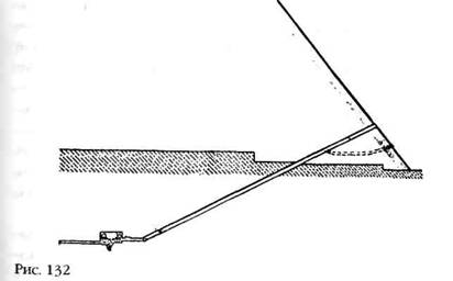 Люди аль-Мамуна принялись дюйм за дюймом пробивать стену пирамиды, нагревая и охлаждая каменные блоки, пока они не начинали крошиться. Работа продвигалась медленно, и халиф уже был готов отказаться от своей затеи, когда рабочие услышали звук падающего камня, свидетельствовавший, что где-то не очень далеко есть пустое пространство. Они возобновили работу с удвоенной энергией и вскоре добрались до наклонного коридора (рис. 132). Поднявшись по нему, люди халифа нашли вход, который не смогли обнаружить при внешнем осмотре. В нижней части наклонного коридора находилось описанное Страбоном углубление – пустое. Отходящая от углубления шахта заканчивалась тупиком.