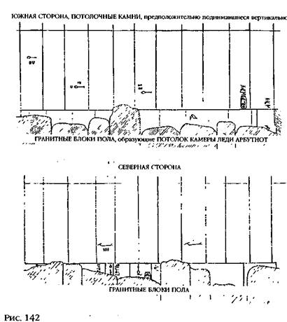 Инвентарная стела была объявлена подделкой только потому, что примерно за десять лет до ее обнаружения стала считаться доказанной идентификация Хуфу как строителя Великой пирамиды. Якобы неопровержимым свидетельством было написанное красной краской имя фараона, обнаруженное в замурованных помещениях над камерой Царя – эту надпись интерпретировали как отметку каменотесов, оставленную в восемнадцатый год правления Хуфу (рис. 142). Поскольку в камеру никто не входил до ее обнаружения в 1837 году, надпись посчитали подлинной; если же Инвентарная стела содержала противоречащее данной теории утверждение, то поддельной, вероятно, являлась именно стела.