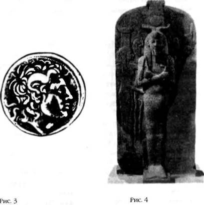 Разгромив персидскую армию в Малой Азии, Александр повернул в сторону Египта. Ожидая ожесточенного сопротивления от управлявших Египтом персидских наместников, Александр был удивлен, обнаружив, что великая страна сдалась ему практически без боя, и воспринял это как знамение. Не теряя времени даром, македонский царь направился прямо к Великому оазису, где находился оракул Амона. Здесь бог лично (так утверждает легенда) подтвердил происхождение Александра. Признав божественное происхождение Александра, египетские жрецы провозгласили его фараоном, и его стремление избежать участи простых смертных таким образом из привилегии превратилось в право. (С тех пор на монетах Александра изображали в виде рогатого Зевса-Амона – рис. 4.)