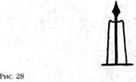 Священный объект – бенбен – был установлен в Хет-бенбен, или Доме Бенбена. Иероглиф, использовавшийся для написания названия храма, указывает на то, что он был похож на огромные фермы стартовой площадки с установленной в них ракетой (рис. 28).