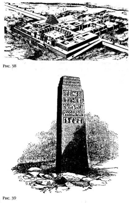 При содействии майора Роулисона, который к тому времени занял пост британского консула в Багдаде, Лэйард в 1845 году вернулся в Мосул, чтобы начать раскопки в дорогом его сердцу Нимруде. Однако, что бы он ни нашел – а он действительно сделал важные открытия, – честь стать первым современным археологом Месопотамии выпала не ему. За два года до экспедиции Лэйарда французский консул в Мосуле Поль-Эмиль Ботта (с которым Лэйард встречался и подружился) предпринял раскопки на одном из холмов в окрестностях Мосула, на противоположном берегу реки Тигр. Местные жители называли это место Хор-сабад, а в найденных при раскопках глиняных табличках с клинописью город именовался Дур-Шаррукином. Это была древняя столица библейского Саргона, царя Ассирии. Над огромным городом с дворцами и храмами возвышалась семиступенчатая пирамида, которая называлась зиккуратом (рис. 38).