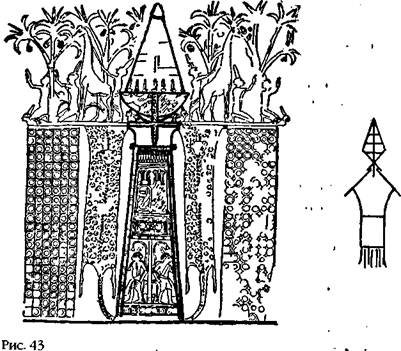 . Соединив два пиктографических значка, мы увидим, что хвостовая часть ГИР – в форме конического командного модуля – точно совмещается с отверстием в носовой части ДИН, очень похожего на многоступенчатую ракету. Более того, если мы поставим получившийся значок вертикально, то обнаружим его поразительное сходство с ракетой в подземной шахте, изображенной на рисунке в гробнице египетского вельможи (рис. 43)