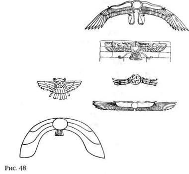 Таким образом, центральным пунктом шумерской астрономии, который оказал влияние на все религии, верования, события и искусство Древнего мира, было убеждение, что в состав нашей Солнечной системы входит еще одна планета с вытянутой орбитой. Это самая главная планета, или «Небесный Владыка», – египтяне называли ее Бессмертной Звездой, или «планетой миллионов лет», – небесная обитель богов. Все без исключения древние народы поклонялись этой планете с самой длинной орбитой. В Египте, Месопотамии и всех других землях ее эмблемой был Крылатый Шар (рис. 48).