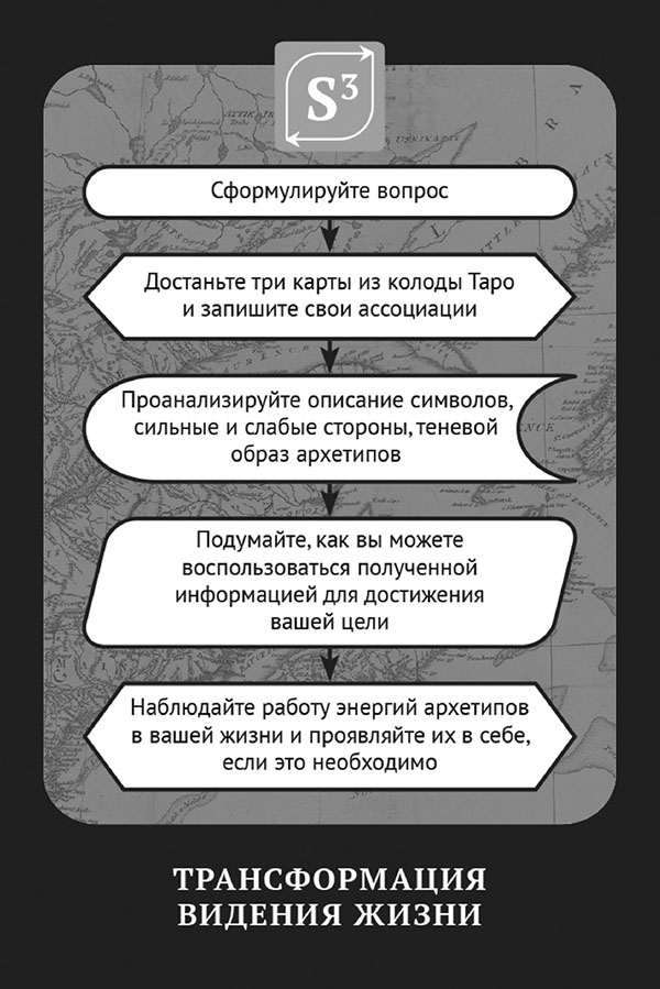 Чтобы изменить видение своей жизни, ее надо осознавать. В аналитической психотерапии в процессе трансформации видения собственной жизни огромная роль отводится методу клиентской работы с символами, образами, метафорами, архетипами и свободными ассоциациями. А именно аналитической интерпретации собственного жизненного пути через создание своего персонального мифа с помощью уникального инструмента – архетипической колоды карт Таро.