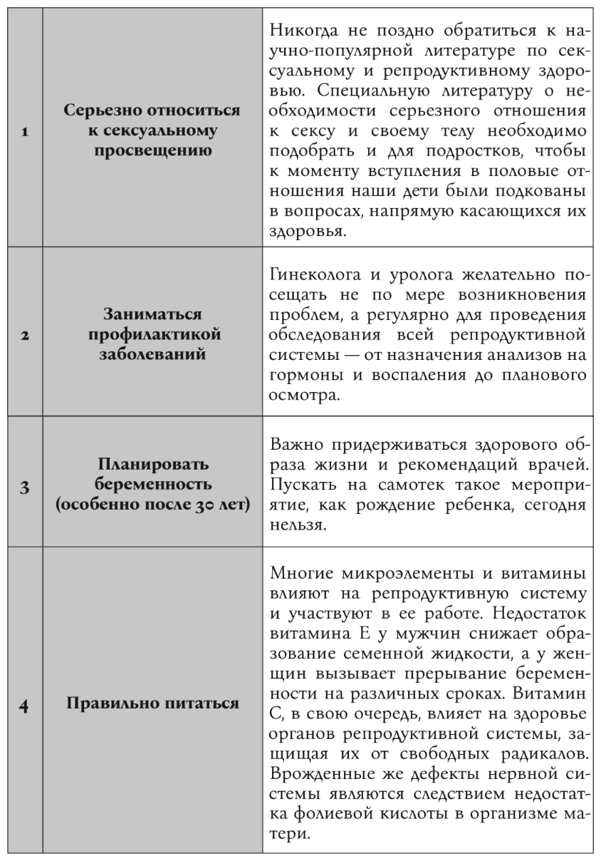 Как же сохранить и продлить репродуктивное здоровье, а также помочь нашим детям в будущем избежать ошибок, приводящих к проблемам с репродукцией? Для поддержания репродуктивной системы в отличном состоянии и женщинам, и мужчинам крайне важно выполнять следующие рекомендации:
