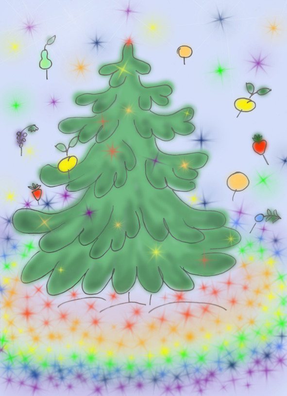 Когда все было готово, Феечка достала волшебную палочку, взмахнула ею над рисунками, прошептала заклинание и все, изображённое на рисунках, превратилось настоящий дворец и сад. Этот дворец был просто чудом зодчества, он был выполнен в византийском стиле с чудесными башенками и крышами, украшенными орнаментом из цветной черепицы. Внутренне убранство дворца вызывало восторг и восхищение. Все комнаты были разными, и в каждой была своя изюминка, роскошные люстры, прекрасные картины и мраморные статуи. В зеркалах блестели и переливались бликами серебряные снежинки, которые плавно кружились за окном. А за дворцом в необычном саду дозревали самые экзотические фрукты рядом с привычными яблоками, грушами и сливами. Каждый житель мог угощаться этими сладкими плодами и отдыхать в уютных комнатах дворца. Посреди сада красовалась высокая и пышная красавица-ель.