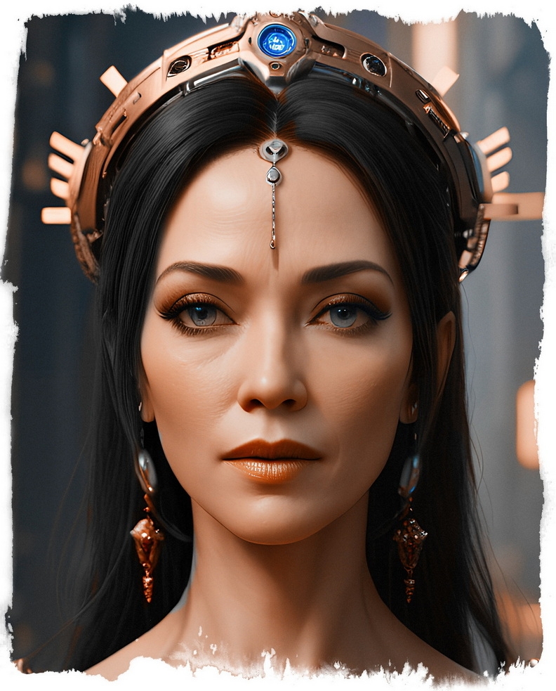 Энки, другой мужчина с овальным убором на голове, увенчанным маленьким хрустальным шаром, вокруг которого вращались тонкие голографические кольца.
