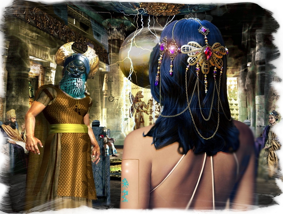 Выйдя из из священного бассейна, Иштар ступила на гладкий каменный пол. Но едва она сделала несколько шагов и последние торопливые струйки сбежали с её тела, как её кожа тут приобрела сначала фиолетовый, затем голубой, а затем молочно-белый цвет. Похоже, что для хорошенькой служанки, стоявший поодаль, наблюдать такое было не впервой, потому что та не нескрываемым с восторгом глядела на свою госпожу. Ибо тело eё госпожи было само совершенство. Лицо её госпожи были словно лучи света, а глаза словно две звезды Вселенной Синаара.