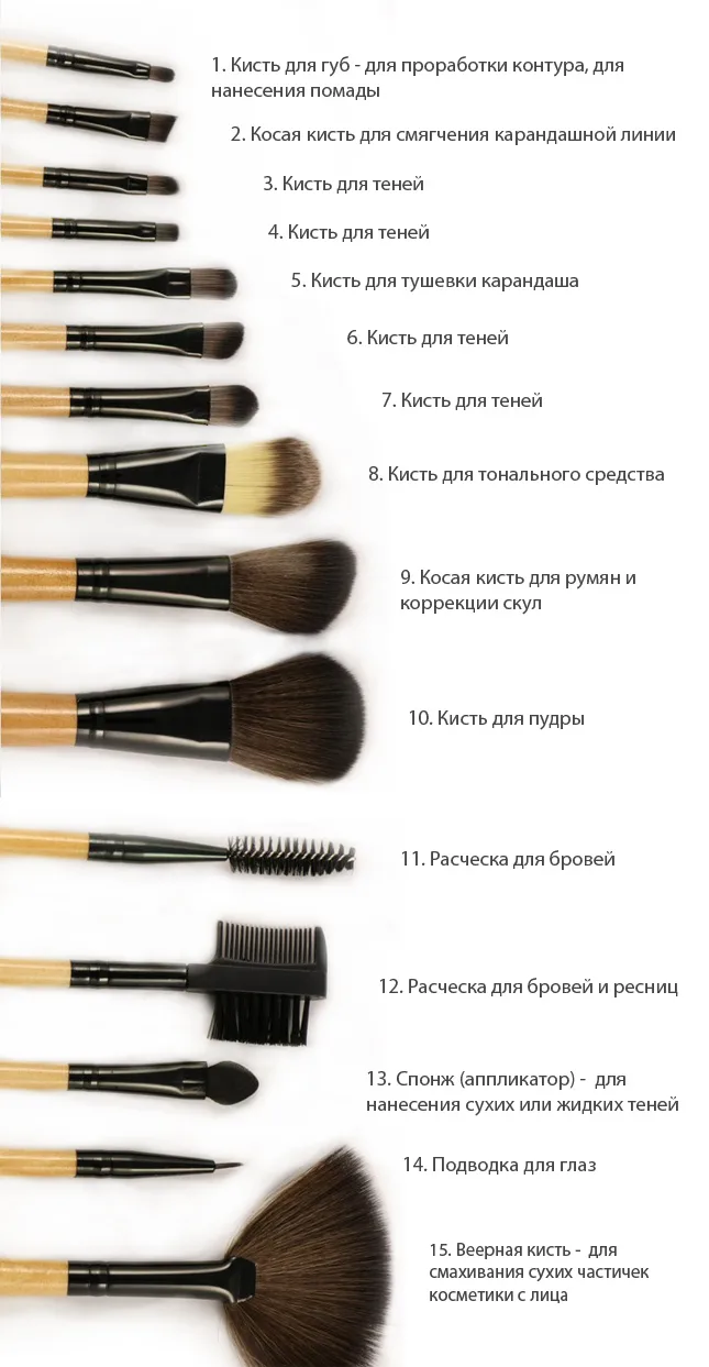 3.Важно не применять один и тот же инструмент для разных косметических средств с разными текстурами. Например, если нужно нанести тон, а потом пудру, то важно использовать две разные кисти.