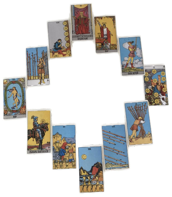 Наверное, многие из читателей обратили внимание, что здесь могут выйти похожие арканы, которые также предвещают брак. Вы совершенно правы. Именно поэтому мы смотрим в совокупности с другими домами, с соседними картами и с зеркалами.