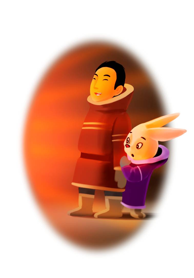 У подножия высоченной горы жила одна старушка со своим внуком. Они были зайцами. Мальчика-зайчонка звали Муннуканом, а его бабушку звали Тухакимнгу. Так они и жили вдвоем. У них были свои олени, летом они доили своих важенок, пили их молоко, когда созревала ягода, они собирали ее и, смешивая ее с молоком, ели. Такое блюдо – монин – бывает очень вкусной и сытной едой.