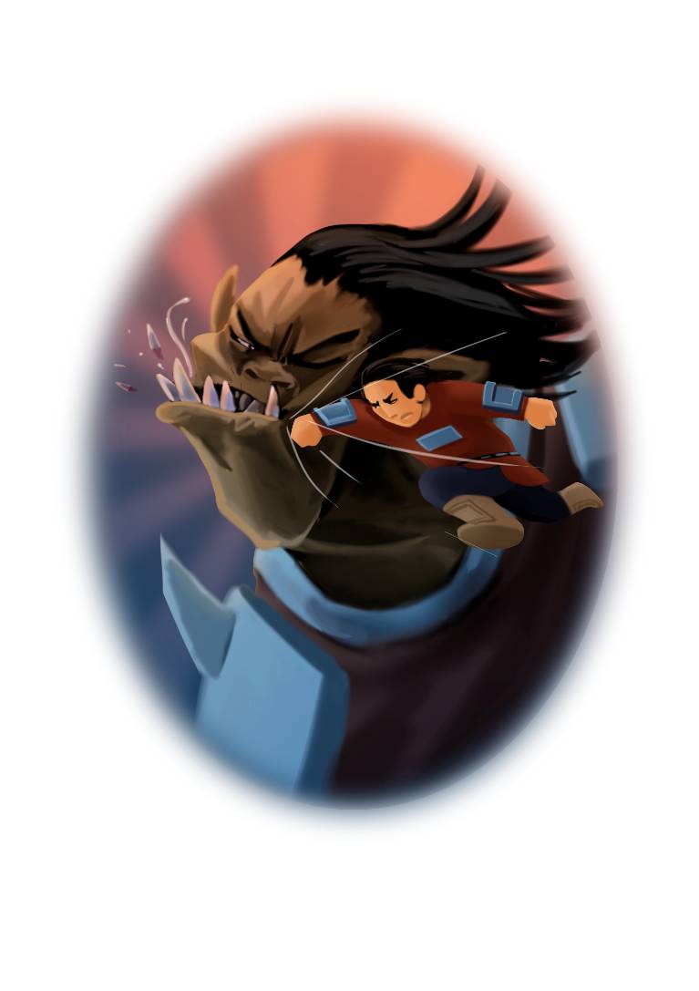 – Странно, почему туманное облако так быстро перемещается из одного конца долины в другой? – подумал наш богатырь-невеличка и стал пристально вглядываться, подлетая все ближе и ближе. Тут он заметил в облаке быстродвижущегося тумана богатыря. Оказывается, от быстрого бега этого богатыря вокруг него образовывался туман, клубы которого скрывали его от человеческого глаза.