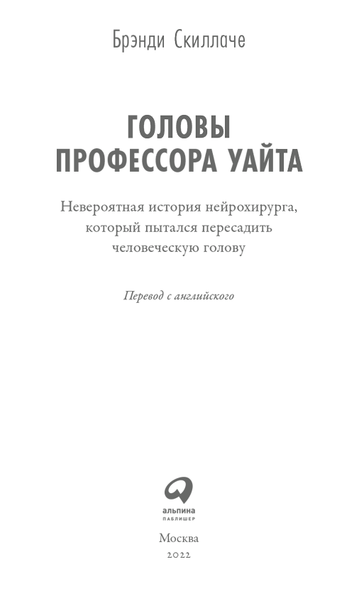 Эта книга рассказывает невероятную историю о почти франкенштейновской затее – о попытках впервые в истории пересадить человеческую голову и о том, как эти фантастические опыты положили начало технологиям, которые и поныне спасают жизни. А еще она пытается решить загадку, до сих пор остающуюся без ответа: если мозг будет жить вне тела, что произойдет с личностью? Или, как это формулировал сам Уайт, – можно ли пересадить человеческую душу?