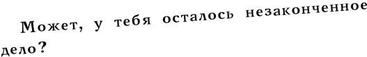 «Рассмотрим этот момент подробнее», – подумала я. Что, если на мне действительно висит незавершённое дело? Значит, моя семья не возвращается не потому, что хочет меня расстроить. Они просто ждут, когда я сделаю это своё дело. Значит, мне надо сделать его, и мы воссоединимся, так?