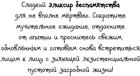 – Выпей, когда придёшь домой, – посоветовала она. – Это снотворное для мёртвых. Ты проснёшься, когда кто-то войдёт в твой дом. А пока ты ждёшь, тебе хотя бы не придётся страдать от одиночества.