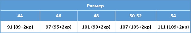 Для 44, 48 и 54-го размеров: 1 кромочная, 1 изнаночная, 2 лицевые, 3 изнаночные, 2 лицевые,3 изнаночные… В конце ряда 2 лицевые, 1 изнаночная, 1 кромочная.