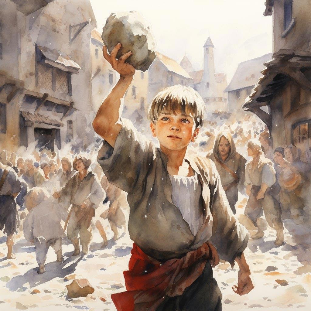 Исбэль его узнала: короткие бриджи, вечно неаккуратно подвернутые, сбитый белесый хохолок на голове, широкие легушачьи щеки и много-много веснушек. Если бы он повернул лицо, то сверкнул бы своими разномастными глазами – голубым и черным. Прошлым летом Исбэль раздавала хлеб по нищим хижинам Псового Переулка, и в одной из них нашла больного мальчишку. Тот свалился в крапиву и покрылся красными волдырями с головы до ног. Каждый вздох ему давался невероятно тяжело. Мать стояла у кровати сына и вытирала горькие слезы, к нему даже не пригласили клирика – жители переулка умирали в тишите и безызвестности.
