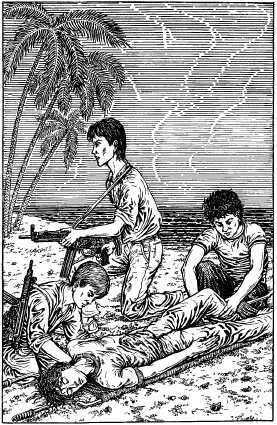 К берегу отправились трое: Мануэль, Педро и Алеша. Алеша тащил носилки.