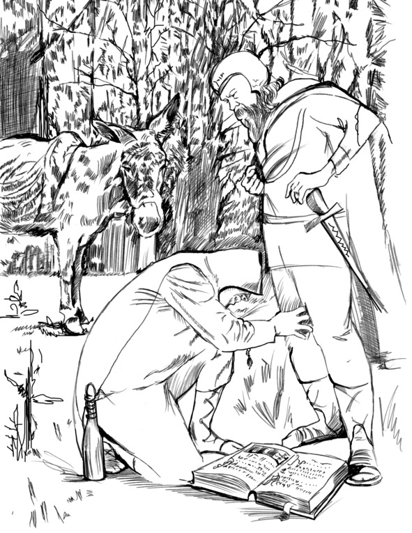 Марсель и Прох вскочили на ослов и бросились наутек. Скакуны еле тащились, несмотря на пинки, удары хлыстами и команды наездников, но погоня так и не последовала, наверное собаки пошли по ложному следу. Примерно через триста шагов они почувствовали себя в относительной безопасности и спешились.