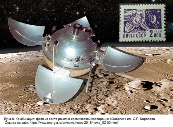 31 января 1966 года с космодрома Байконур был осуществлён пуск ракеты-носителя «Молния», которая вывела на траекторию полёта к Луне советскую автоматическую межпланетную станцию для изучения Луны и космического пространства (АМС) «Луна-9» (производитель КБ им. Лавочкина, СССР). 3 февраля 1966 года станция «Луна-9» совершила первую в истории мягкую посадку на Луну. Это произошло в Океане Бурь, к северо-востоку от кратера Кавальери. С АМС были проведены 7 сеансов связи общей продолжительностью более 8 часов. Во время этих сеансов станция передавала панорамные изображения поверхности Луны вблизи места посадки. Была подтверждена «метеорно-шлаковая» теория строения наружного покрова Луны, выдвинутая советскими учёными В. Шароновым и Н. Сытинской. АМС передала на Землю по радио панорамы лунного ландшафта на месте посадки, произвела измерения интенсивности радиации, обусловленной воздействием космических лучей и излучением лунного грунта. Этот запуск имел грандиозное значение не только для дальнейшего изучения и проведения научных исследований, но и для подготовки пилотируемых запусков к Луне.