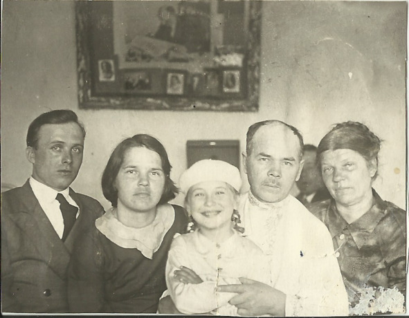 На фото моя семья (слева направо): папа – Павел Григорьевич, мама – Галина Николаевна, я, дедушка – Николай Андреевич, бабушка – Александра Степановна.