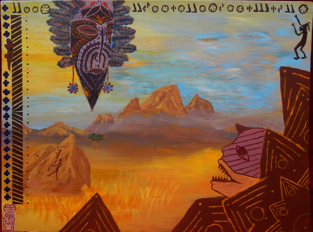 И вдруг насекомые роящиеся вокруг меня стали разлетаться, а жар кожи отступил. Тело полегчало и я стал вспоминать все что со мной было и куда я шел. В высоте небес появилась пестрая маска с плюмажем из больших ярких перьев и росписями на лице. Оба Тала сказал