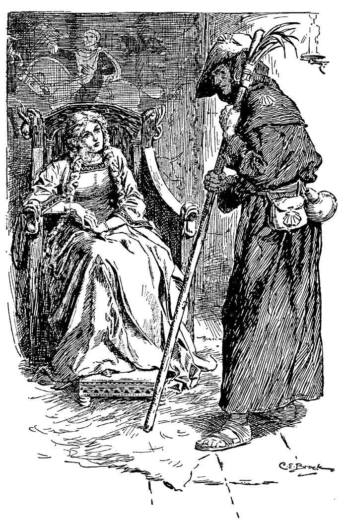 – Встань, странник, – сказала она приветливо, – заступник отсутствующих достоин ласкового приема со стороны каждого, кто дорожит истиной и чтит мужество. – Потом, обратясь к своей свите, она сказала: – Отойдите все, кроме Эльгиты. Я желаю побеседовать со святым пилигримом.