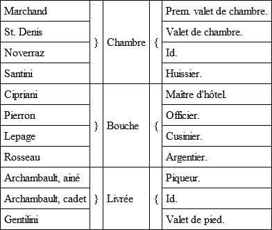 Something happened to three of the servants, Pierron, Aby, and Archambaud, which cannot be now precisely ascertained. It is thought, however, that Pierron was sent away in consequence of some quarrel about a female servant; Aby (probably) died, and one of the Archambauds went to America.