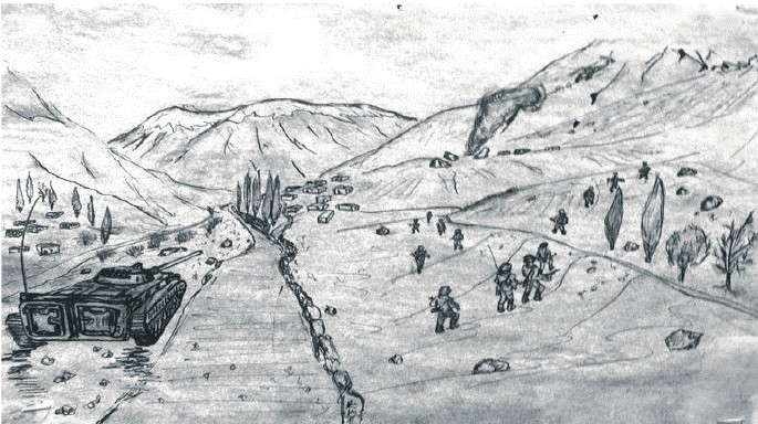 Впереди управления батальона следовало гранатомётное отделение во главе с заместителем командира взвода сержантом Германчуком, за ними – майор Иванов со взводом связи, а в замыкании с двумя гранатомётными отделениями шёл старший лейтенант Годына. В движении среди арыков, виноградников и небольших населённых пунктов трудно было определить, насколько далеко вперёд ушли две мотострелковые роты, но связь с ними была бесперебойной. По ходу пути показался небольшой кишлак, вдоль которого теснились террасы с полями и виноградниками. Обогнув несколько крайних глинобитных домиков, взяли в сторону и пошли вдоль поля с полуразрушенным дувалом. Вскоре вышли к небольшой террасе и виноградникам. Стояла мёртвая тишина, только слабый декабрьский ветер обдувал лица бойцов и командиров.