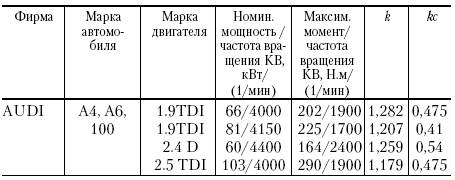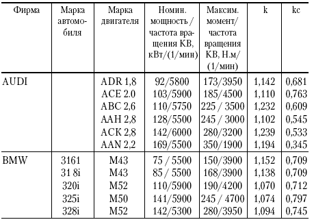 Известны расчетные значения к и кс, полученные для автомобилей нескольких ведущих фирм Германии, а также автомобилей ВАЗ и ГАЗ (табл. 1).