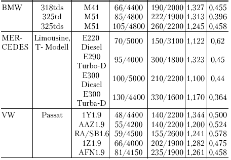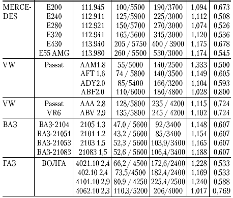 Специалисты утверждают, что для большинства современных бензиновых двигателей легковых автомобилей зарубежного производства к = 1,028-1,333, тогда как для дизельных двигателей характерны значения kc = 1,100-1,344.