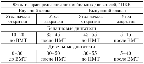 Фазы распределения автомобильных двигателей