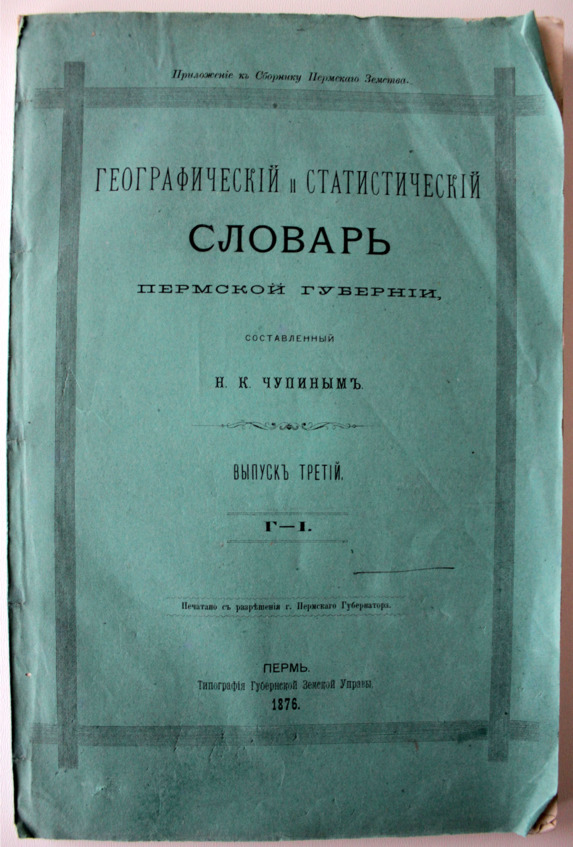 Географический и статистический словарь Пермской губернии Чупина 1876 года