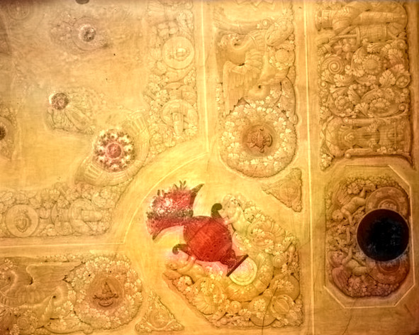 Расписной потолок в Доме Расторгуева-Харитонова в Екатеринбурге, где родились дочери купца Зотова. В 1937 году роспись была закрашена при реконструкции под «Дворец Пионеров»