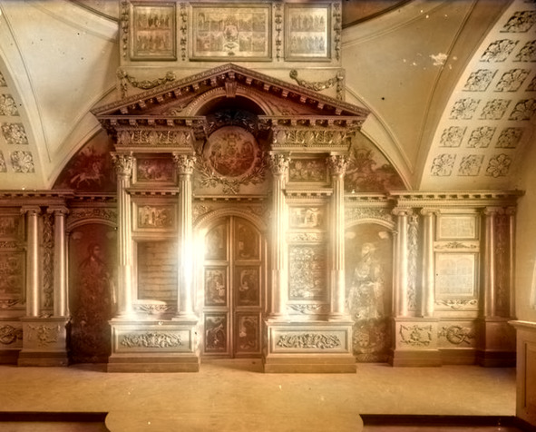 Домовая старообрядческая церковь семей Расторгуевых, Хотовых, Харитоновых в Екатеринбурге. Иконостас разобран в 1920-х годах, при устройстве в здании Коммунистического университета