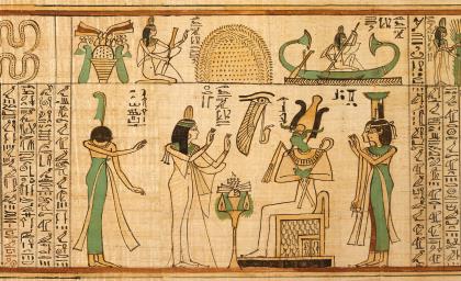 “Тексты пирамид”. К памятникам литературы Древнего царства (3 тыс. до н. э.) относятся “Тексты пирамид” – надписи в погребальных помещениях пирамид, адресованные покойному. Эти надписи сообщали ему магические формулы и указывали на те действия, которые он должен совершить в загробном мире. Уже в этих первых текстах выражается главная тема древнеегипетской литературы (и искусства в целом): культ мертвых, борьба со временем, преодоление смерти и достижение вечной жизни. При анализе текстов в них обнаруживаются фольклорные (формульные) художественные средства: повторы, употребление архаизмов, параллелизм, аллитерации – созвучия согласных (об ассонансах – созвучиях гласных – судить невозможно, так как гласные не записывались и их звучание неизвестно).