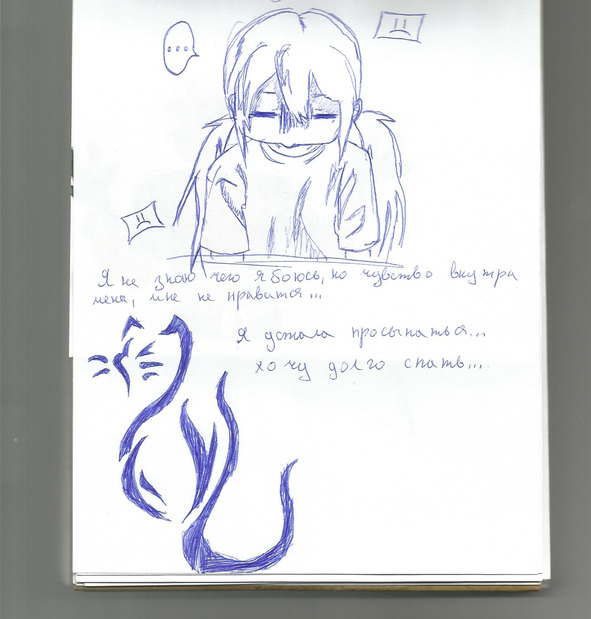 В темноте забытого мира тенейКоролева – на троне из скелетов.В окружении тварей, что заперты в клетках.«Доставьте невольницу» – шепчет кому-то.И из тьмы непрогляднойВыходит девица в оковах…Её глаза невинны, как и тело,Но руки и ноги в синяках от цепей.«Привет, любимая» – тихо шепчет ей.«Что изволите, королева?» —Молвит девица в ответ.И подойдя с улыбкой к той деве,Королева рукой замахнулась.Рукой, что с когтями зверя —Рукой, что темнее неба.Упала девица на землю сырую,И влажную от крови людей.Девица привстала. Заплакав, сказала:«Я тебя ненавижу, ты знаешь?Твой мир – это клетка, по сути».Королева кричит ей:«Ты не достойна ни лучика света,Ты поплатилась за то, что так красива».И дрожит от холода тело,И мурашки по коже прошли.«За что мне винить королеву?Королеву, что за печаль вдруг казнит.Она всего лишь одна из злодеев,Что живут в этом месте забытом…Забытое странное место,Где мысли давно умерли».И ведёт королева девицуВ свою клетку для пленённых людей.«Сегодня терзать тебя буду я снова,И слово попробуй лишь проронить…Твоё слово – это капелька крови,Что оставляет на теле ожог».И ушла королева прочь из темницы.Туда, где часто был слышен смех.Ну, а девица осталась в той клетке,Под присмотром демонов всех.Страдая от боли, девица шептала:«Когда же закончится это?»Но в ответ услыхала рычанье зверей,Имеющих облик когда-то людей.И спать на полу та девица легла, —Крики тварей сводили с ума.Ощущая липкую кровь на руках —Нет покоя ей по ночам.И утром ей тоже не спится —Всё часто терзают кошмары.Жить в этом месте стало привычно.И просыпаясь, видеть лишь нары.Оковы не жмут уже на ногах,Но так хочется оказаться птицейВ надёжных и верных руках.И увидеть родных своих добрые лица.Но девице судьба – страданий сполна,А любовь живёт только лишь в сказке.Её разум поглощает печаль,За которой следует казнь в маске.Свою жизнь в страданьях отдатьВ этом месте стало комфортно.Здесь твари любого хотят лишь сожратьКоролеве в услугу злобной.И средь клеток в оковах в углуЗастонала милая дева —Кудрявые волосы, зелёные глаза.«Боже мой» – прошептала девица,Рассмотрев и узнав в ней себя.И потянув свои руки в оковах,Тихо её позвала…Та из угла подошла незаметно,Ведь жизнь девицы давно уже спета.Девчонка была лишь с виду несчастна,Внутри же была исчадием ада.И заключив непростой договор,Девица осталась в клетке одна.Девица желала увидеть хоть капельку света,Отдав своё тело и разум за этоЧтоб крылья, что сломаны,Воскресли в мгновеньеИ стали белее, чем облака на небе.Но крыльев всё нет, и нет капельки света.И ключ от темницы был потерян на веки.Ключ на свободу, на покой в её сердце.Девица страдает, страдает в углу.И помог бы кто ей унять ту тоску.Демонов много, но она здесь однаСредь монстров, нелюдей и тварей.Девица устала – не может вернуться.В оковах сидит, и не может проснуться.Тело горит, перестала мечтать,Не может сказать, и теряет свой разум…Но сбросив оковы тяжёлого сна —Вдруг в кровати своей открывает глаза.В мире своём, где свет и тепло,И опять в своём теле осознала себя.Только королева осталась в том сне,И больше не тревожила болью.Лишь вопрос один оставался во тьме:«Надолго я здесь?»И тихо в ответ:«Насколько протянешь, милая Мэри»…
