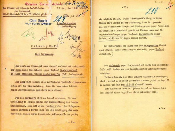 Германские вооруженные силы должны быть готовы разбить Советскую Россию в ходе кратковременной кампании еще до того, как будет закончена война против Англии (План «Барбаросса»).