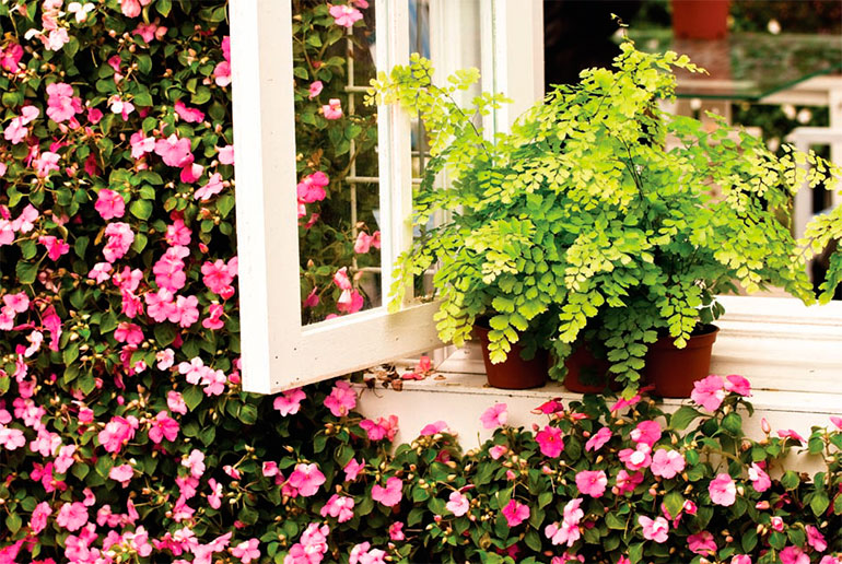 Вертикальным озеленением называется декорирование растениями любой вертикальной поверхности: окон, дверей, внутренних или наружных стен. При использовании вертикального метода вы также можете высаживать вьющиеся и ампельные растения в контейнеры, ящики и кадки.