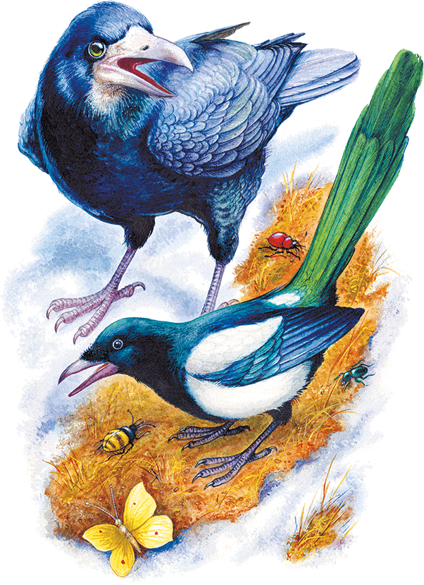 – Не скажи! – подскочила Сорока. – А семена? А жуки? А ростки зелёные? Всю зиму без витаминов.