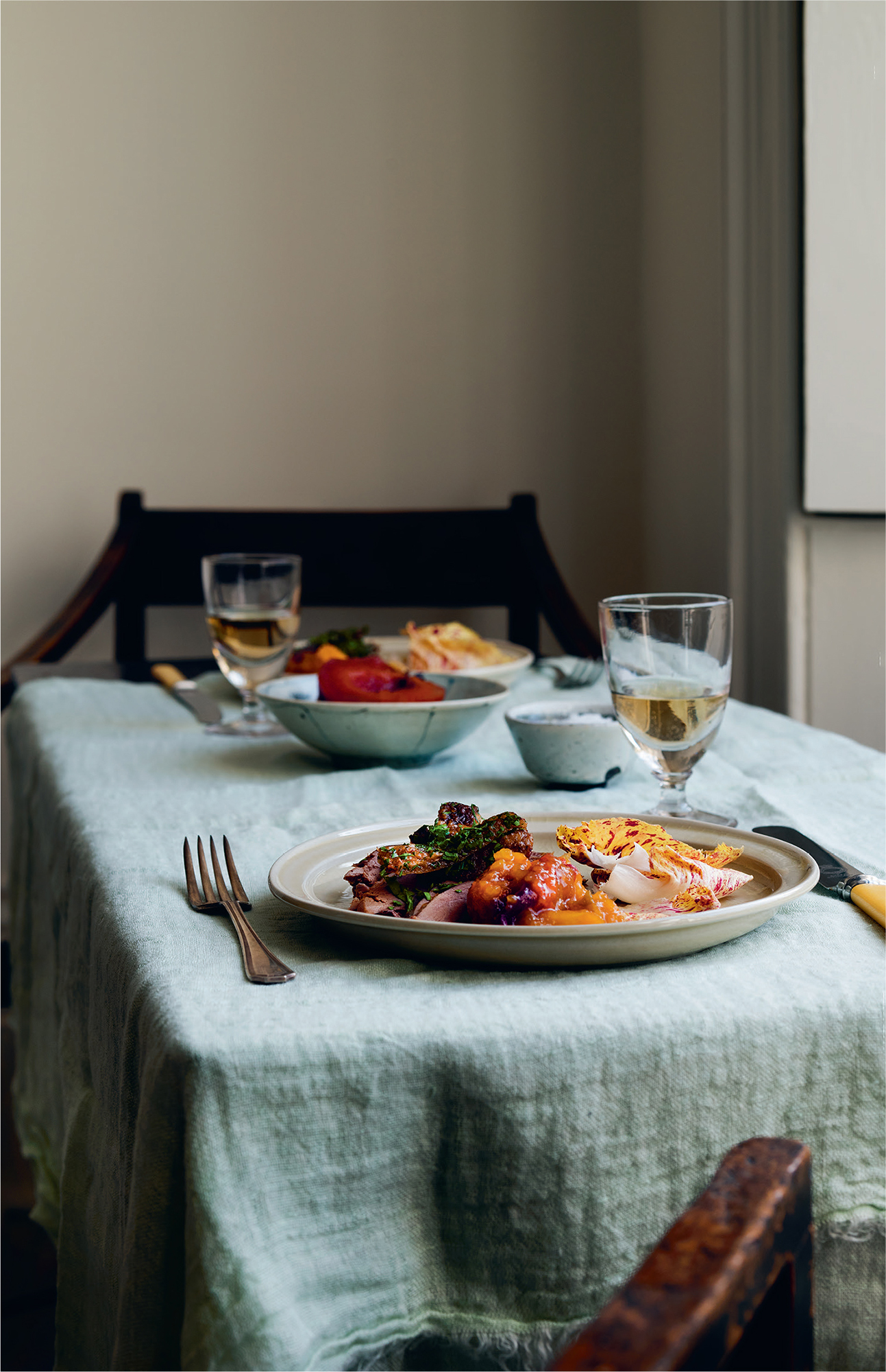 That said, I don’t go wholly along with the idea of winter food as a source of comfort and cossetting, solace and warmth. I still want a crackling fresh salad, a plate of fruit to finish my meal, food that refreshes. I don’t drop my need for a daily bowl of leaves and herbs lightly dressed just because there is frost on the ground and woodsmoke in the air. It is all here, by the way, in these pages.