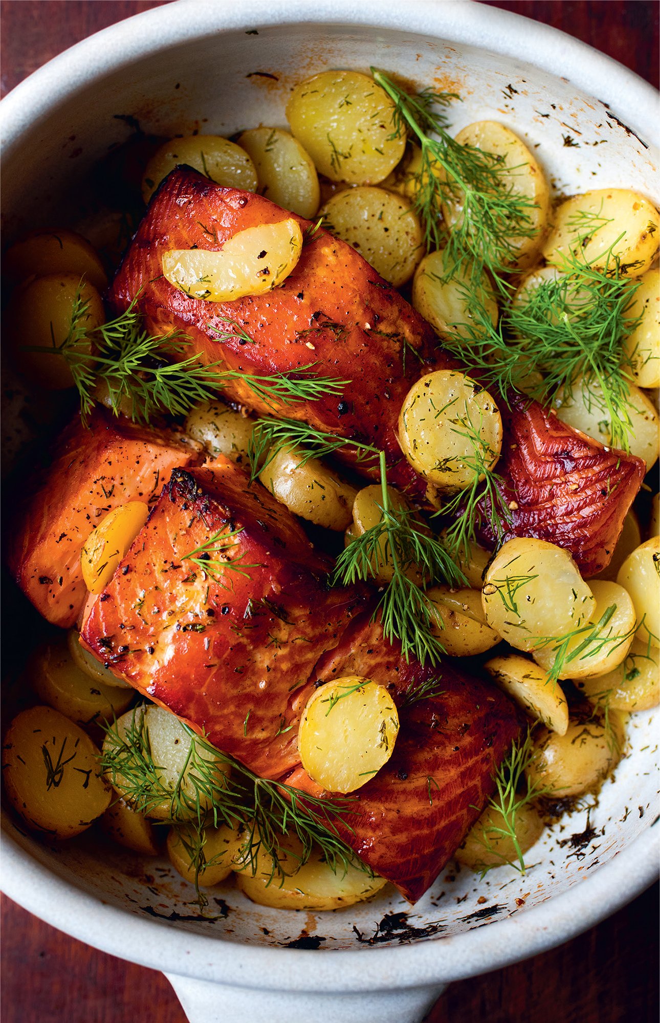 Hot-smoked salmon, potatoes and dill