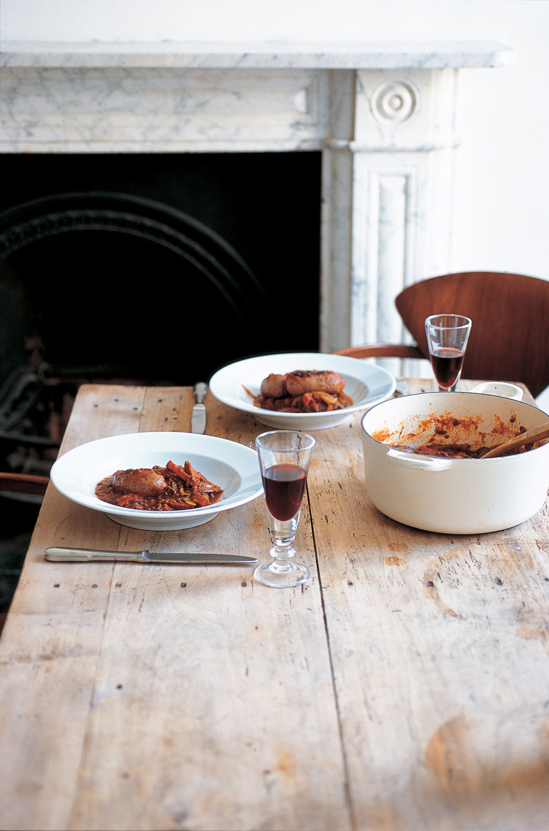 A chill day, the sky the colour of wet aluminium. I need the sort of meal that ends with everyone squishing their potatoes into the meaty, oniony sauce on their plate. A sauce that is warm rather than spicy, enriched with the goodness of meat cooked on the bone.