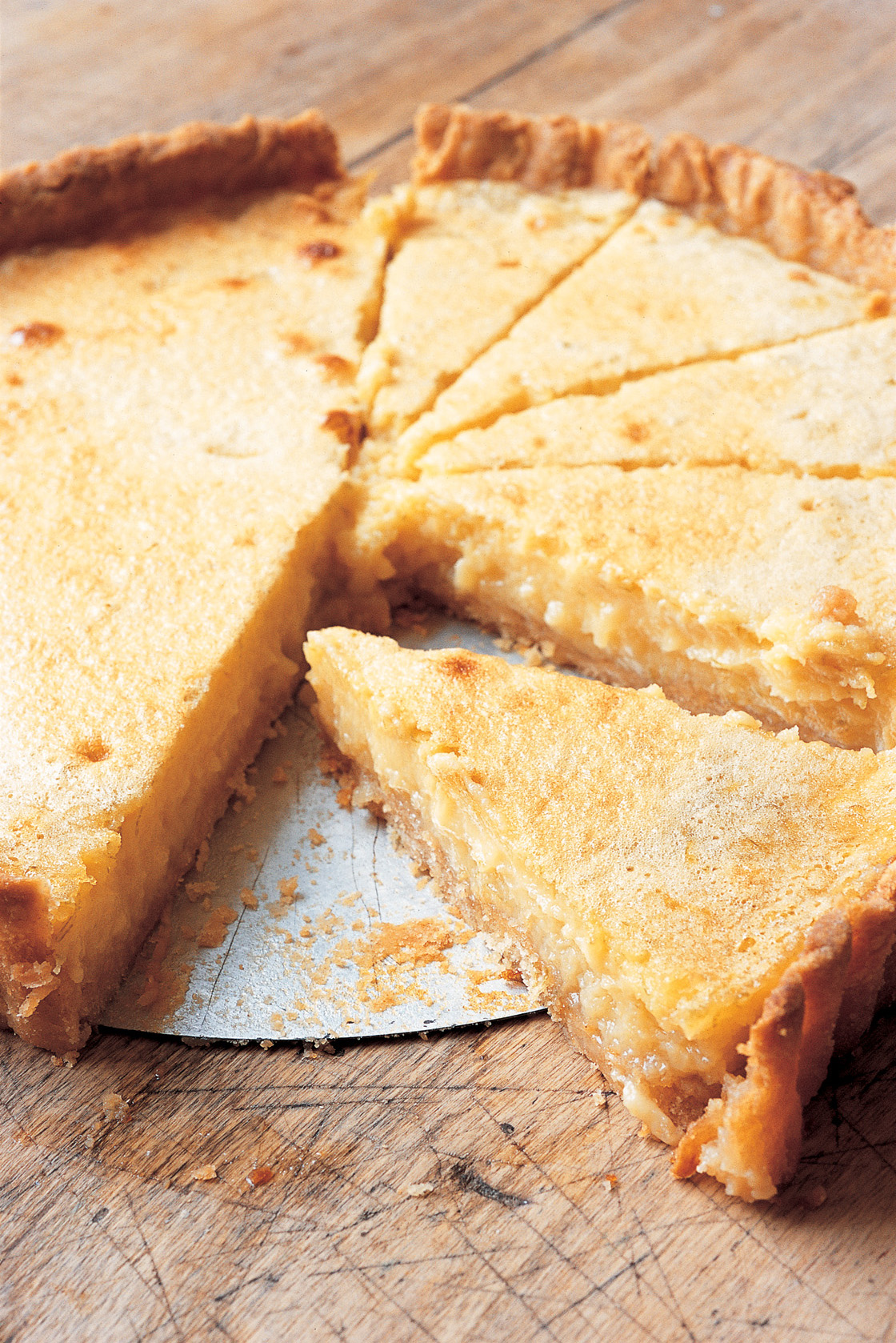 The air is again clear and cold, and there are paper-white narcissi in a bowl on the table, filling the kitchen with their gentle, vanilla smell. Winter at its purest. This is the sort of day on which I like to bake – a cake, a pie, a tart perhaps. I enjoy making pastry, though rarely do, each time adding as much butter as I dare, just to see how crisp and fragile I can get the crust. Today I want something fresh, with a clean bite to it, a dessert to make everyone smack their lips. I decide on a lime custard tart in the style of a tarte au citron. The lime zest cuts through the cool air. The warm smell of baking pastry wafts into the rest of the house. Heaven. Half way through baking, I check the tart’s progress, only to find the pastry case empty and the citrus filling forming a lemon-coloured pool on the baking sheet. I pile the whole damn failure into a basin (and later eat it in secret after everyone has gone home) and start again. This time I make absolutely certain the pastry case has not the faintest hole or crack in it before I pour in the filling.