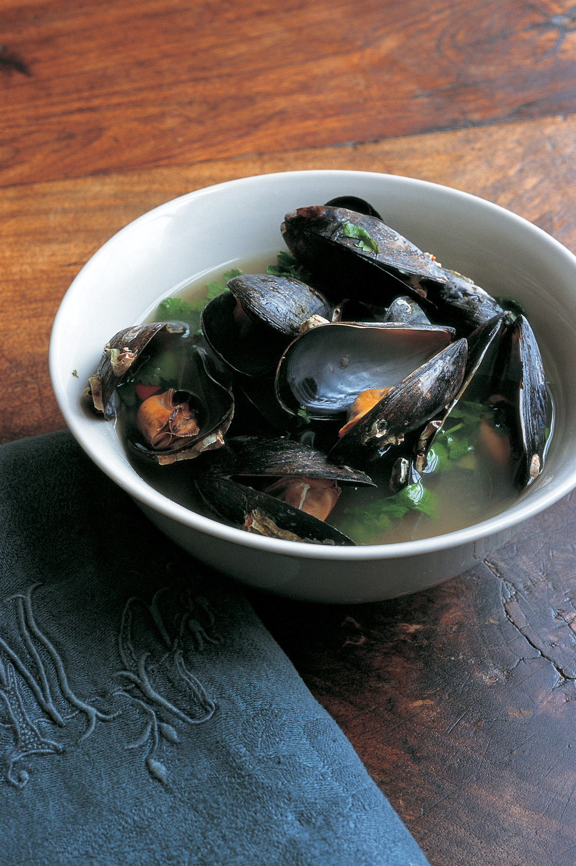 A clear, hot mussel soup