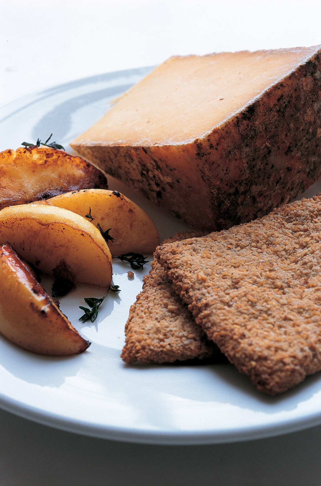 A ploughman’s lunch is something to be kept away from the whims of an imaginative cook. The most tinkering I will tolerate is the occasional oatcake in lieu of bread and the odd radish or pickled onion as a crunchy distraction. If the cheese is firm and British then I’ll willingly take an apple too. Today I slice a Cox’s apple and let it colour in a little butter in a non-stick frying pan. I put a jagged piece of Mrs Appleby’s Cheshire cheese and a slice of warm, tender apple on to each oatcake and eat them whilst the apple is still hot. Yes, a mucked-about ploughman’s but surprisingly none the worse for it.