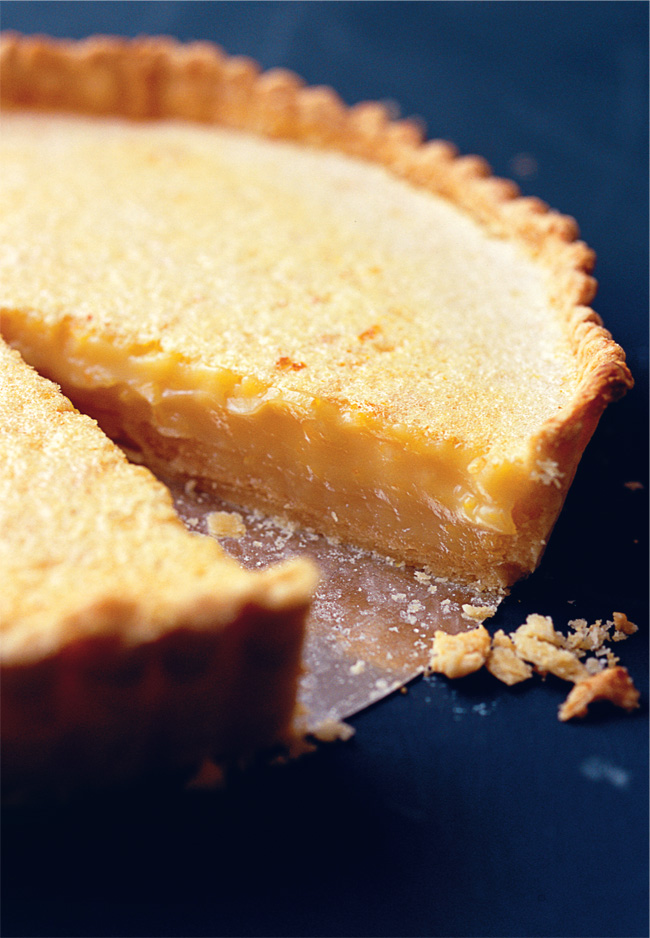 The tart case needs to be made with care, so the edges don’t shrink as they cook, otherwise it will leak once the filling goes in. I keep a little bit of pastry aside for patching, so that if any cracks or gaps appear I can patch them before I add the lemon custard.