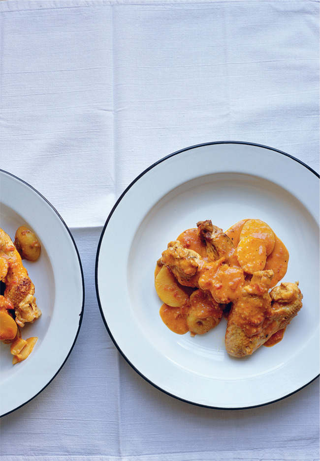 You could serve this with plenty of the brick-red, coconut-scented sauce and some steamed rice, but I prefer to reduce the sauce over a high heat, stirring almost continuously to prevent it sticking to the pan, till it is thick enough to coat the chicken wings.