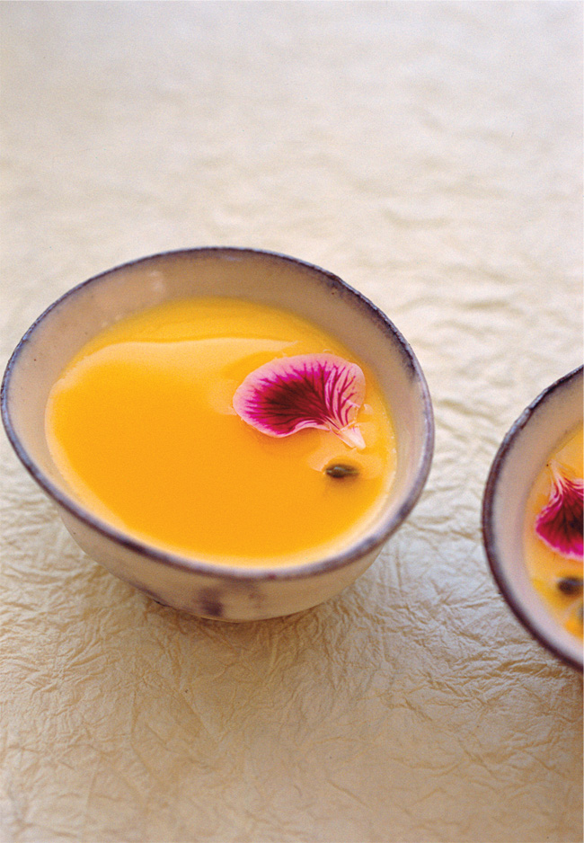 Just before you serve the creams, spoon a little puddle of the passion fruit juice over the top. As each diner digs in with their teaspoon, the juice will trickle down into the depths of the cream.
